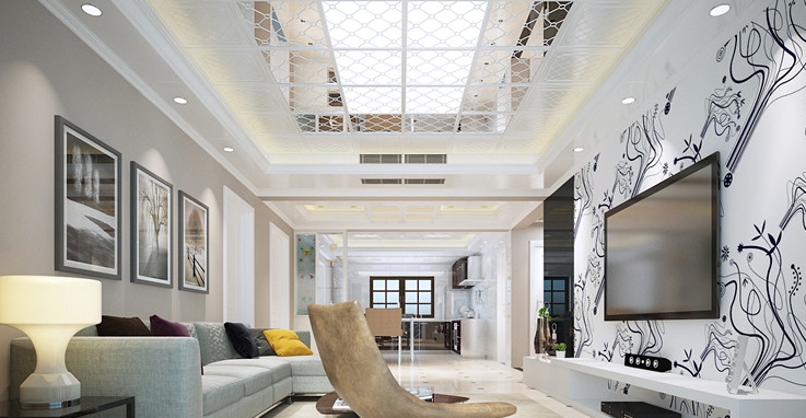 頂部扣板上令人神往的圓潤皎潔月盤,好似流轉(zhuǎn)的光陰,散逸出動人的風(fēng)采。整體暖黃的布局,給客廳籠罩上一層溫馨氛圍。
